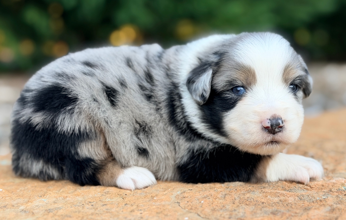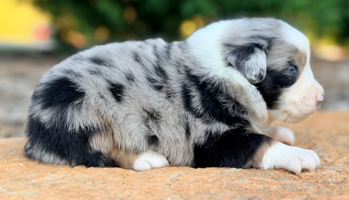 Montana is a beautiful blue merle boy..