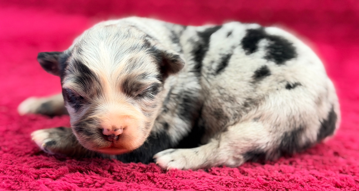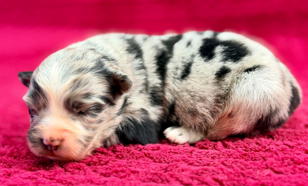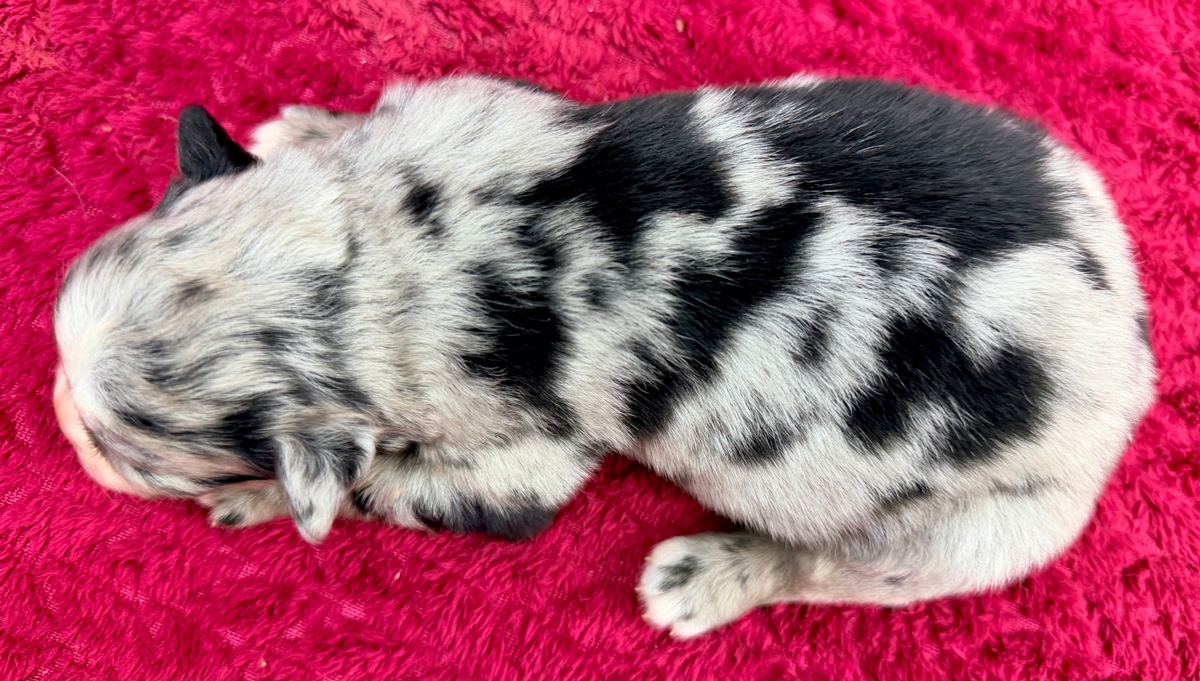 Prince William is a beautiful blue merle boy..