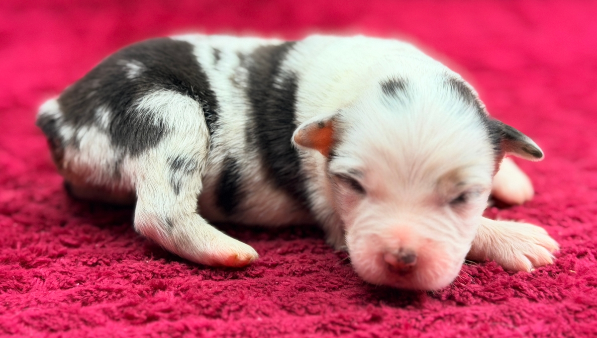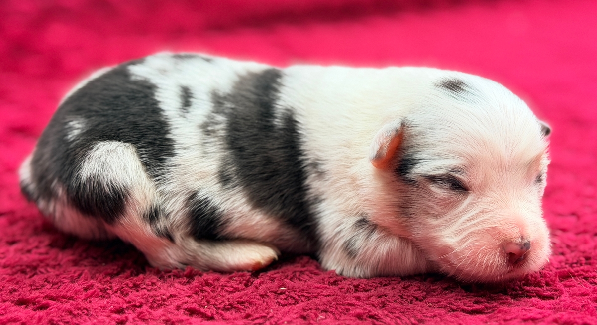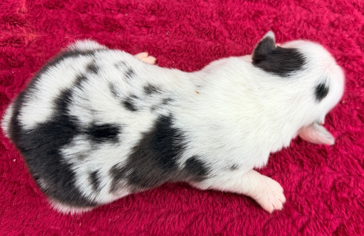 Uncle Cracker is a beautiful blue merle boy..